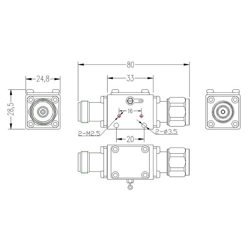 2. In the field of RF test and measurement, it can be used as a supporting component for the characteristic test of active devices in laboratories, realizing the co-path input of DC bias and test RF signals.